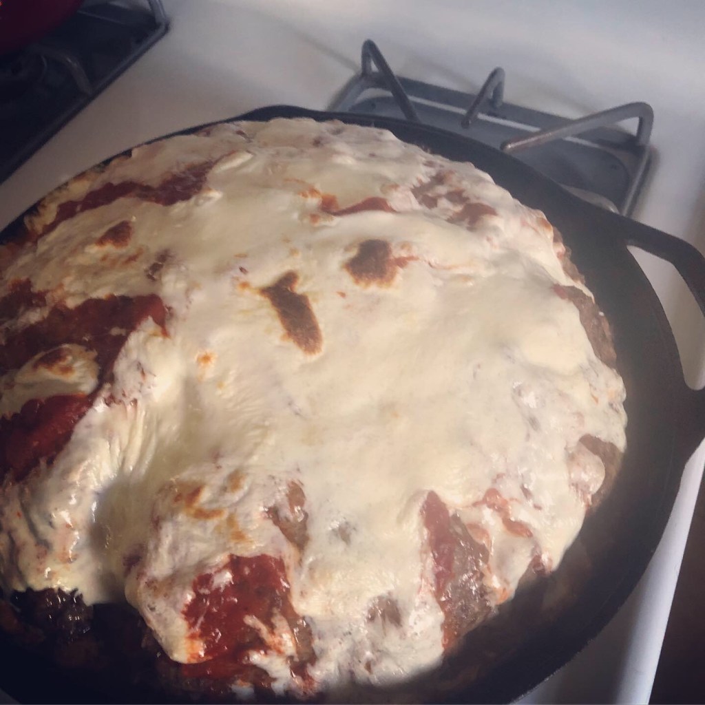 This was my attempt at a meatball stuffed with pasta. It was huge, it’s in a large cast iron pan. My boys did not like it at all… too much meat. Landed up in the trash.