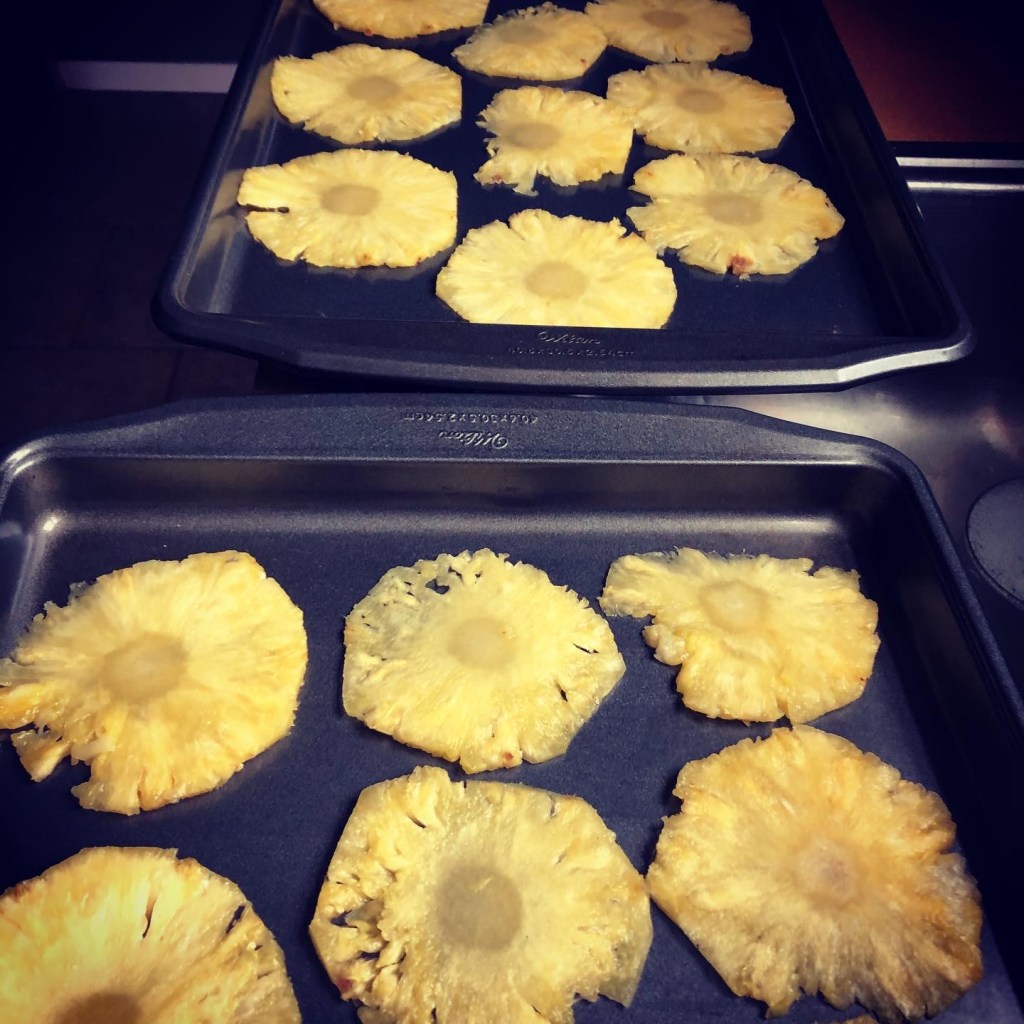 In no way did these resemble flowers, but they tasted damn good… and you know what they say about pineapple?? Look it up, haha. I made these months ago, maybe I should attempt them again, i happen to have fresh pineapple right now. Key is, ya gotta slice them really thin, without cutting yourself.